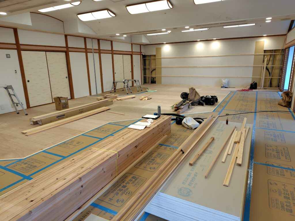 既存畳床を全面撤去し、用途変更に適した床構成へ再構築。
