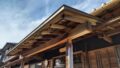 扉両側の柱を更新する場合、屋根との取り合いまで工事範囲が広がるため、今回は腐朽部の板材交換に限定しました。